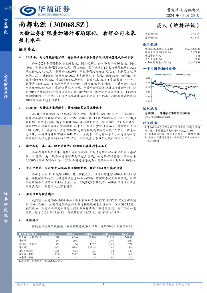 华福证券:南都电源(300068)-大储业务扩张叠加海外布局深化,看好公司未来盈利水平.pdf