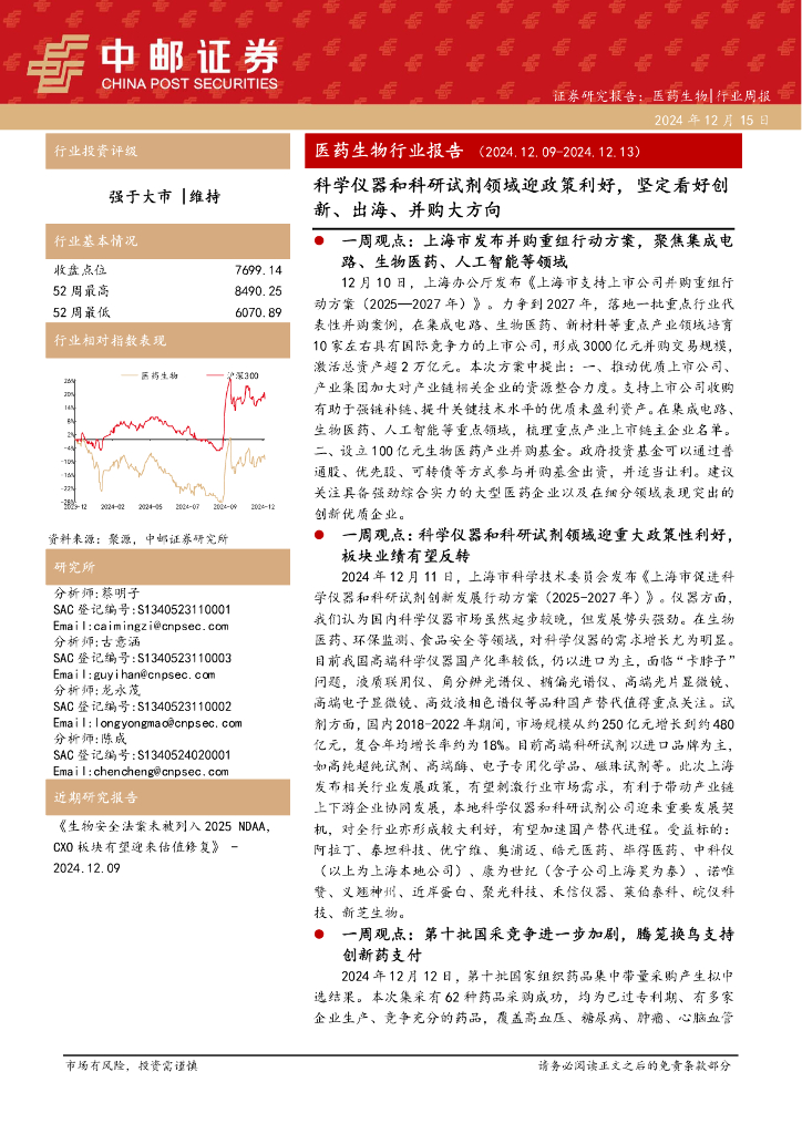 中邮证券:医药生物行业报告:科学仪器和科研试剂领域迎政策利好,坚定看好创新、出海、并购大方向.pdf