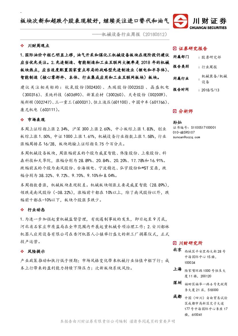 川财证券:机械设备行业周报:板块次新和超跌个股表现较好,继续关注进口替代和油气.pdf