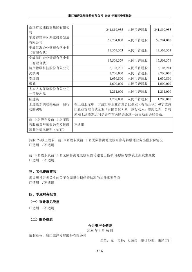 603213-镇洋发展:浙江镇洋发展股份有限公司2025年第三季度报告.pdf