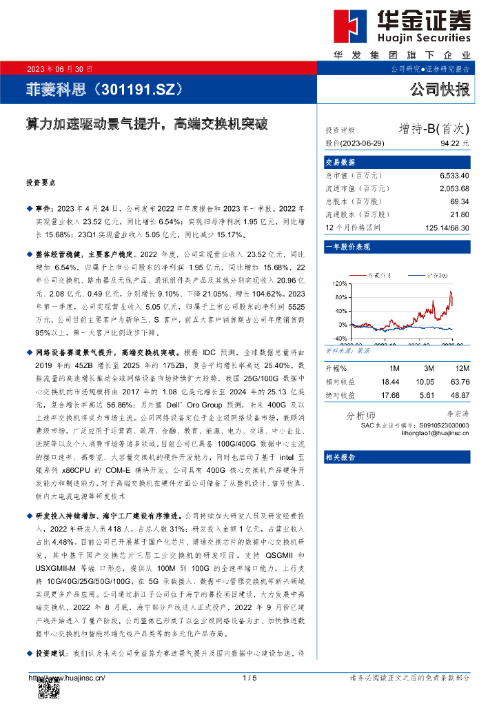 华金证券:菲菱科思(301191)-算力加速驱动景气提升,高端交换机突破.pdf