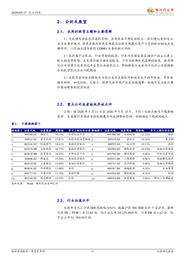 新时代证券:化工行业投资周报:半导体材料领域关注度提升,坚守优质企业.pdf