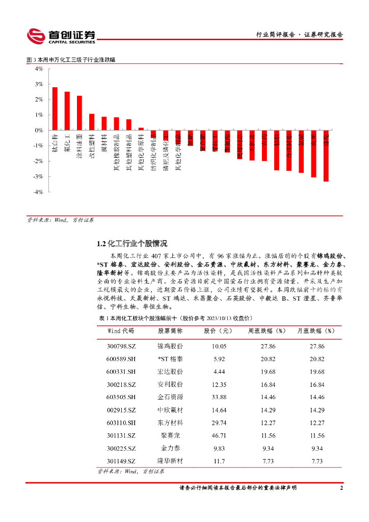 首创证券:基础化工行业简评报告:硫酸价格涨幅居前,万华化学第三季度单季归母净利润同比增长28.21%.pdf