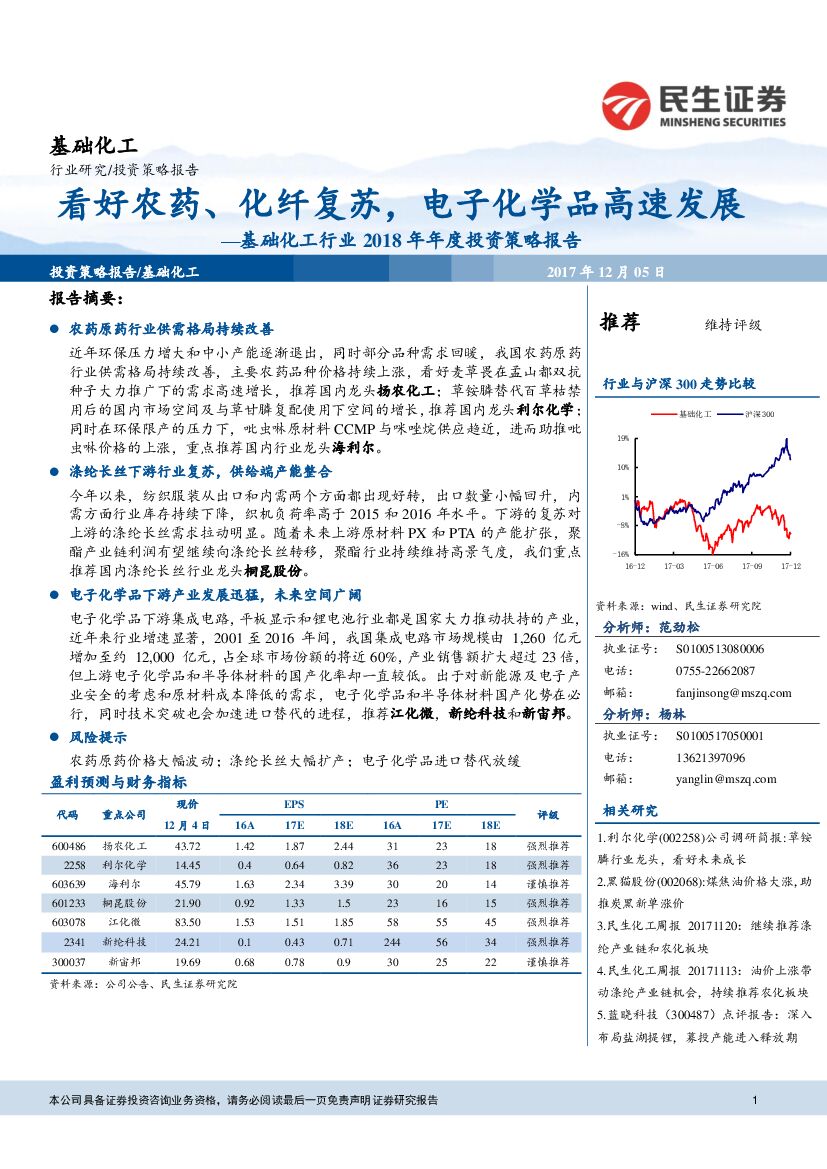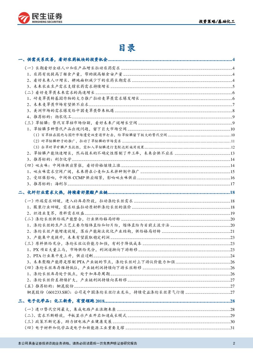 民生证券:基础化工行业2018年年度投资策略报告:看好农药、化纤复苏,电子化学品高速发展.pdf