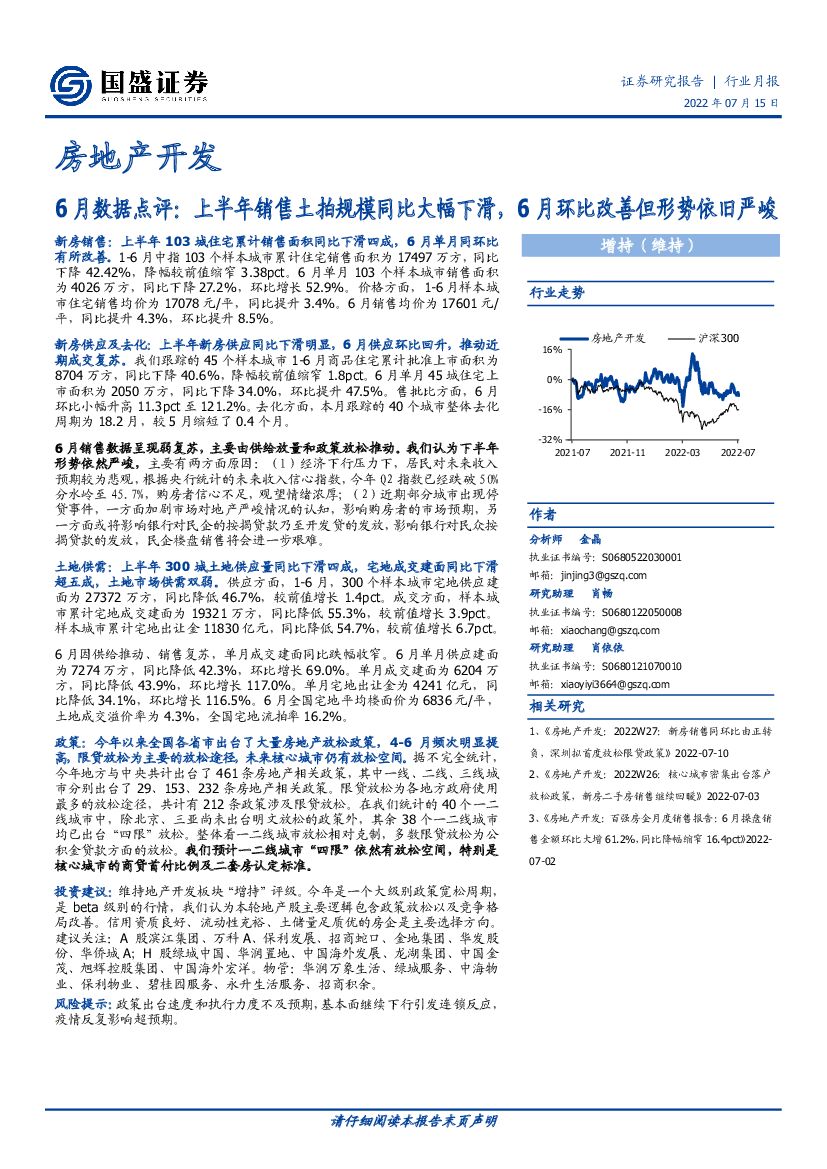 国盛证券:房地产开发6月数据点评:上半年销售土拍规模同比大幅下滑,6月环比改善但形势依旧严峻.pdf