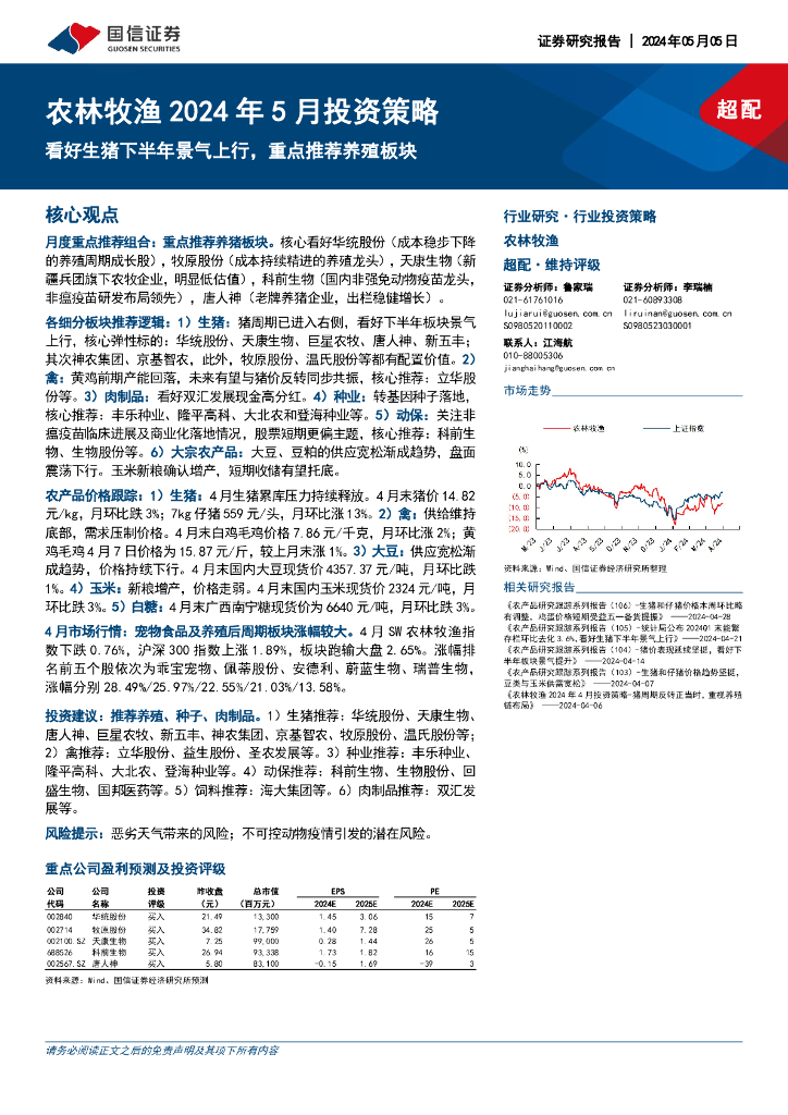 国信证券:农林牧渔2024年5月投资策略:看好生猪下半年景气上行,重点推荐养殖板块.pdf