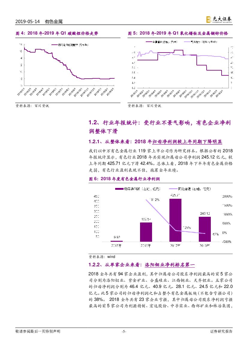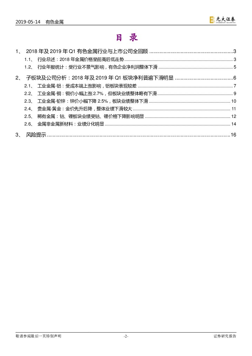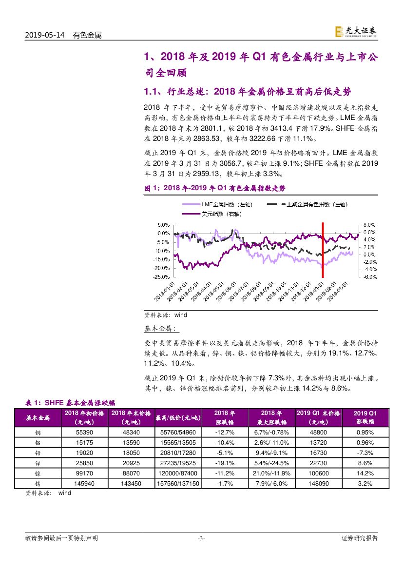 光大证券:有色金属行业2018年报及2019年一季报总结:2018年下半年金属价格出现下跌,拖累有色企业全年业绩.pdf