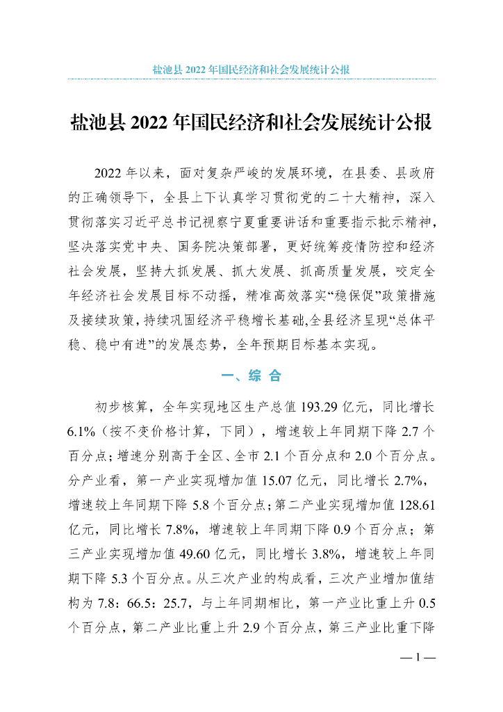 盐池县2022年国民经济和社会发展统计公报.pdf