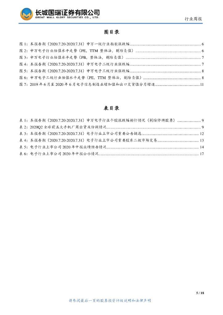 长城国瑞证券:电子行业双周报2020年第15期(总第39期):2020Q2全球智能手机出货同比下降16%,苹果公司二季度营业收入增长11%.pdf