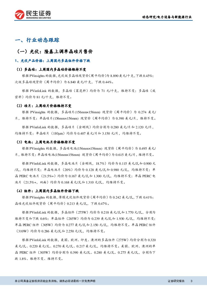 民生证券:新能源行业数据周跟踪:隆基上调单晶硅片价格.pdf