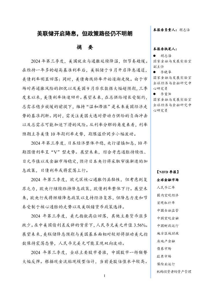NIFD季报:美联储开启降息,但政策路径仍不明朗——2024年Q3全球金融市场.pdf