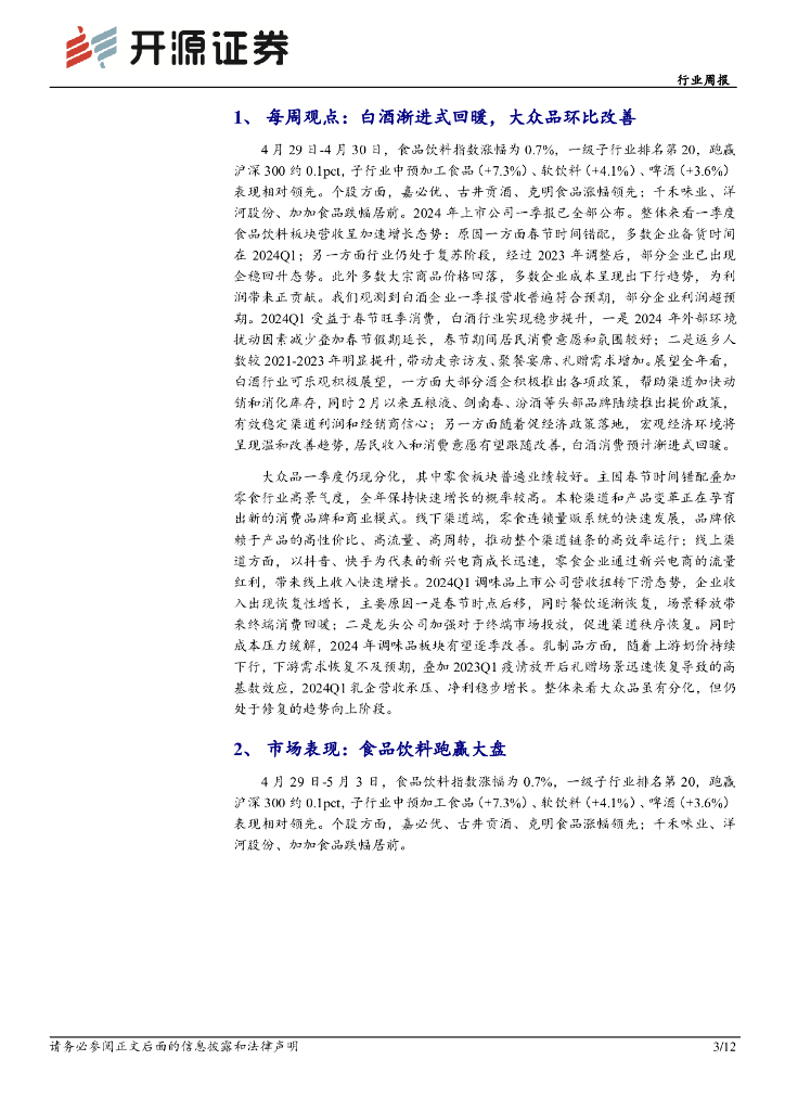 开源证券:食品饮料行业周报:一季报白酒业绩稳健,大众品复苏中仍现分化.pdf