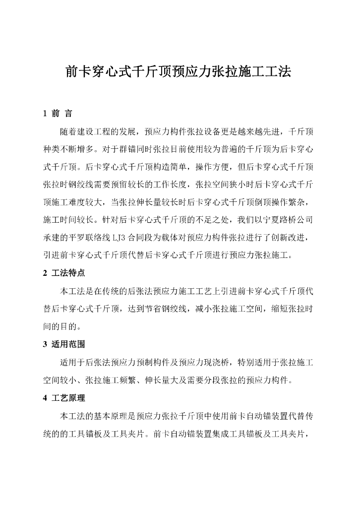 前卡穿心式千斤顶预应力张拉施工工法.pdf