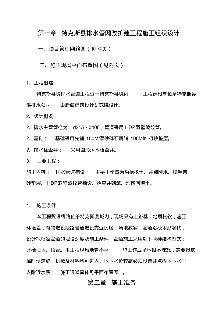 特克斯县排水管网改扩建工程施工组织设计31页.pdf