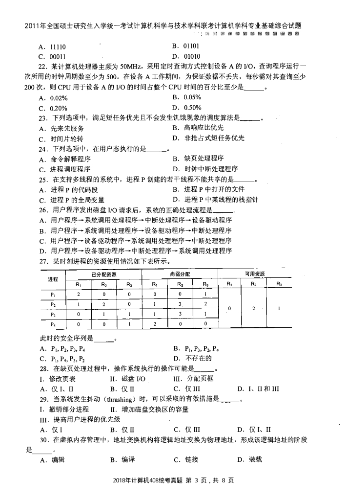 2011年全国硕士研究生入学统一考试计算机科学与技术学科联考计算机学科专业408基础综合试题+解析.pdf