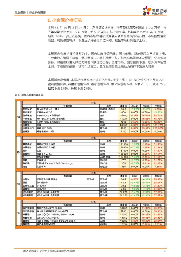 天风证券:稀有金属行业研究周报:海外中报季后的管中窥豹:氢氧化锂,还是氢氧化锂.pdf