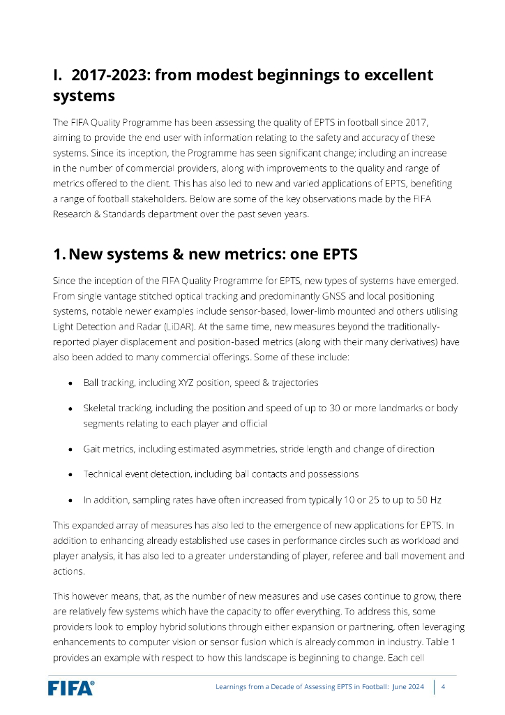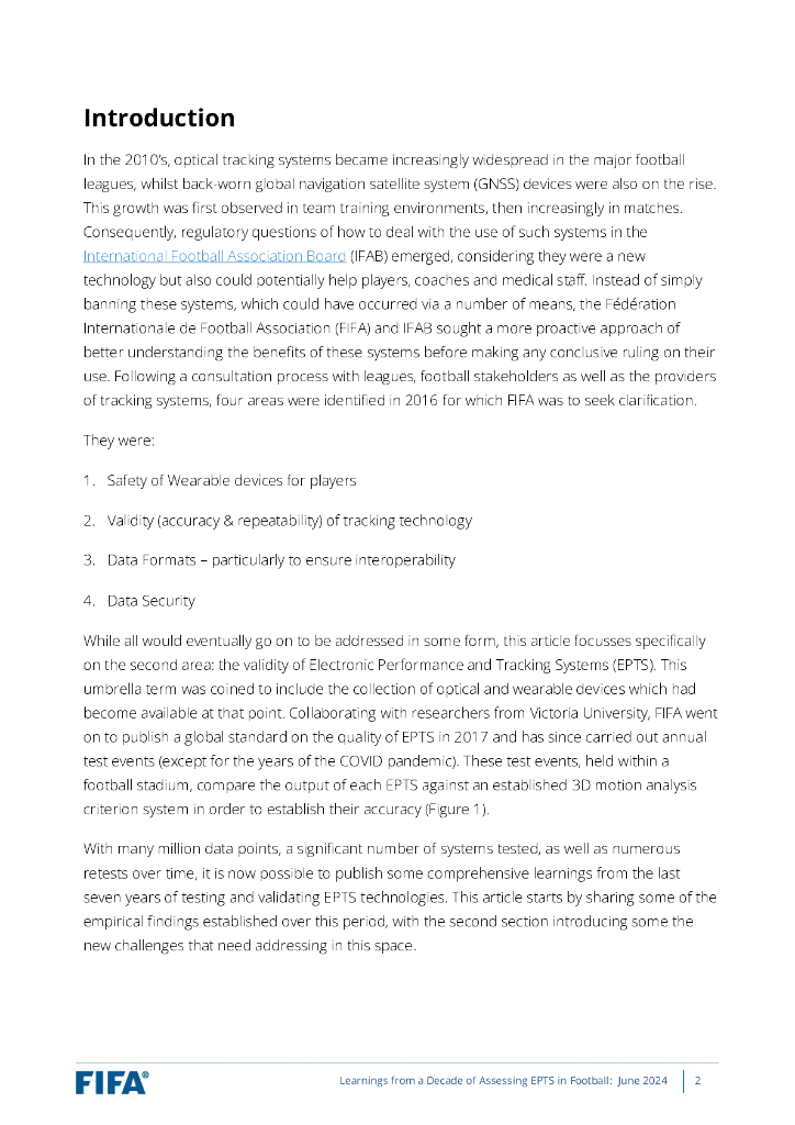 国际足联(FIFA):2024年足球研究与标准-十年来评估足球电子表现与追踪系统的经验教训报告(英文版).pdf