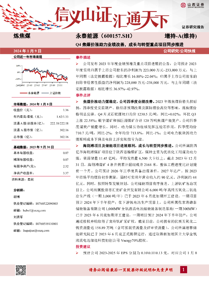 山西证券:永泰能源(600157)-Q4焦煤价涨助力业绩改善,成长与转型重点项目同步推进.pdf