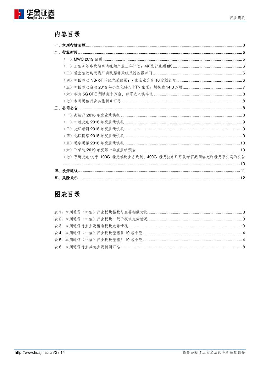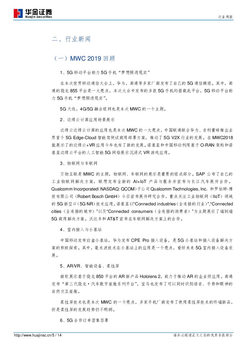 华金证券:通信行业周报:MWC 2019亮点回顾,5G商用逐步启动,产业链整合与变革进行中.pdf