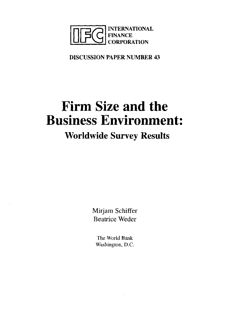 世界银行:国际金融公司讨论文件-企业规模与营商环境:全球调查结果(英文版).pdf