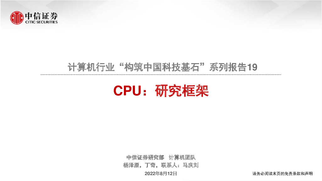 中信证券:计算机行业“构筑中国科技基石”系列报告19:CPU,研究框架.pdf