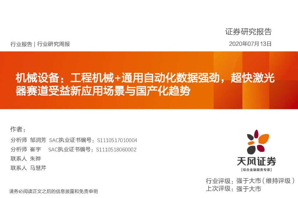 天风证券:机械设备:工程机械+通用自动化数据强劲,超快激光器赛道受益新应用场景与国产化趋势.pdf