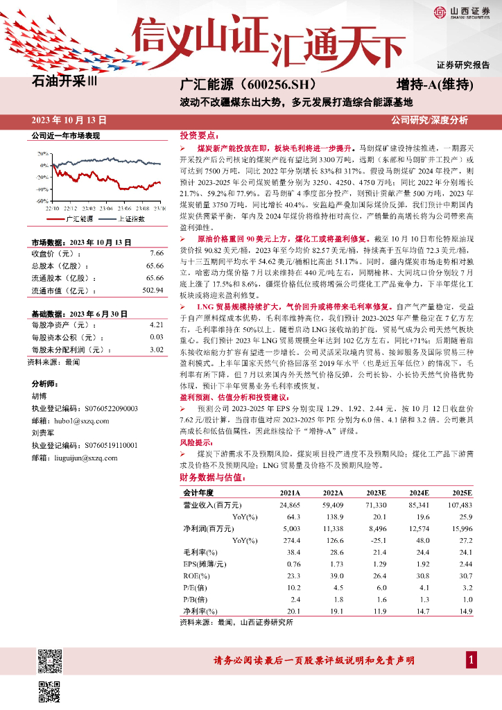 山西证券:广汇能源(600256)-波动不改疆煤东出大势,多元发展打造综合能源基地.pdf