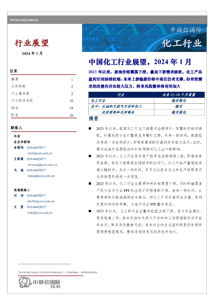 中诚信国际:中国化工行业展望,2024年1月.pdf
