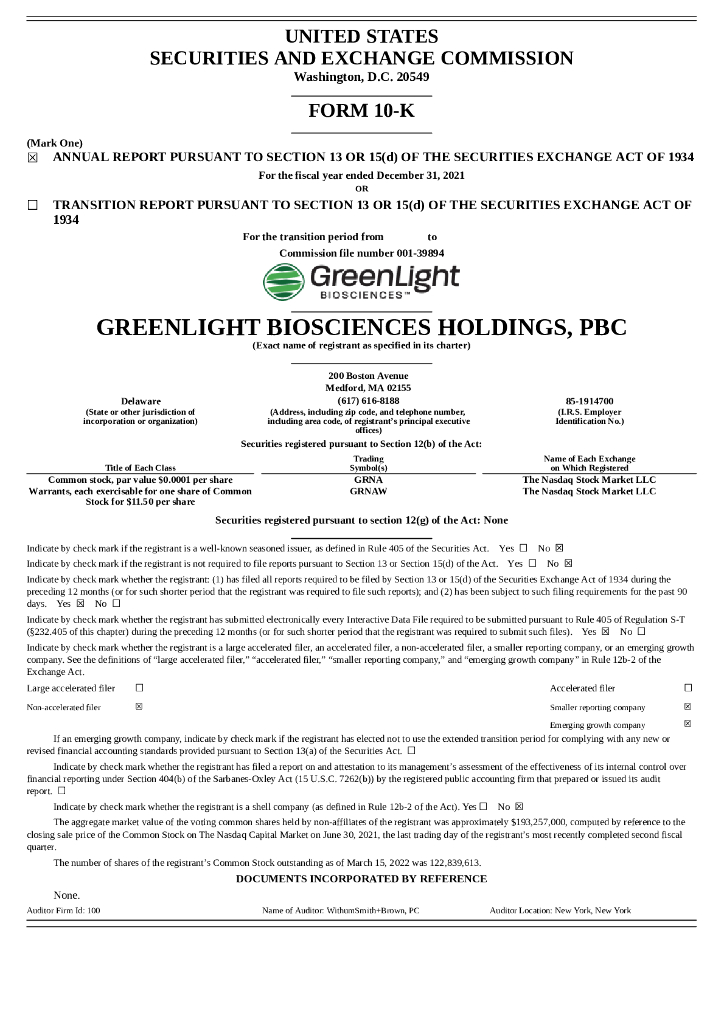 GreenLight Biosciences(GRNA)2021财年年度报告(英文版).pdf