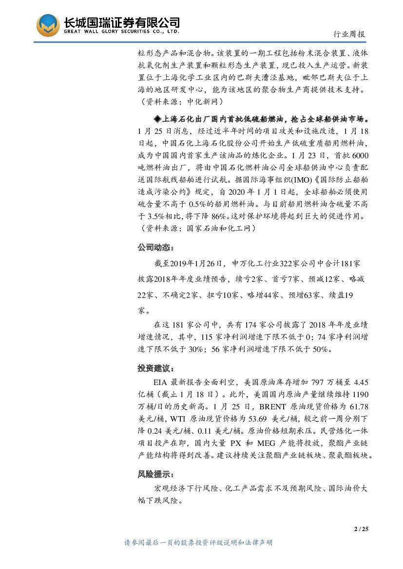 长城国瑞证券:化工行业双周报2019年第2期(总第2期):美国原油库存意外跳增、产量维持高位,原油价格承压.pdf