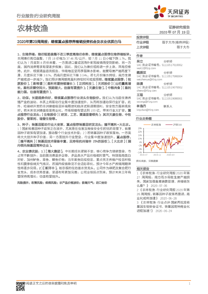 天风证券:农林牧渔2020年第29周周报:继续重点推荐养殖链投资机会及农业优质白马.pdf