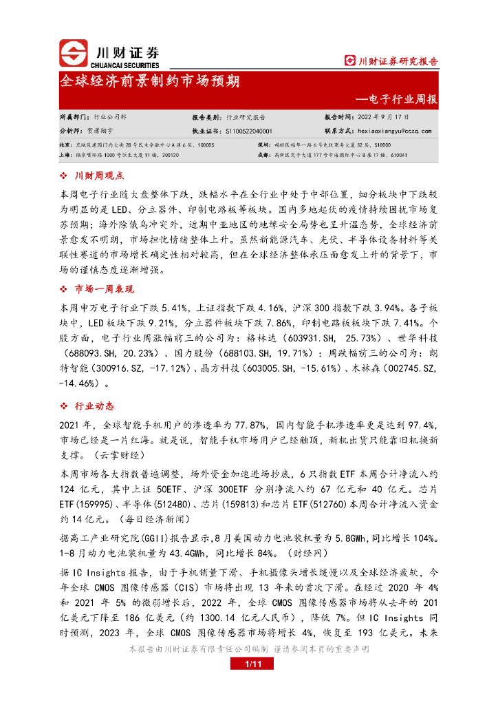 川财证券:电子行业周报:全球经济前景制约市场预期.pdf