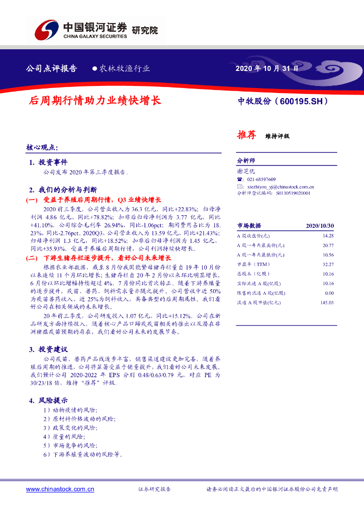 中国银河:中牧股份(600195)-后周期行情助力业绩快增长.pdf