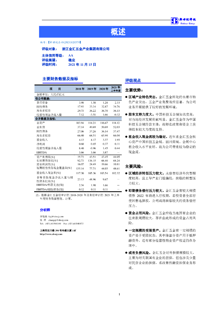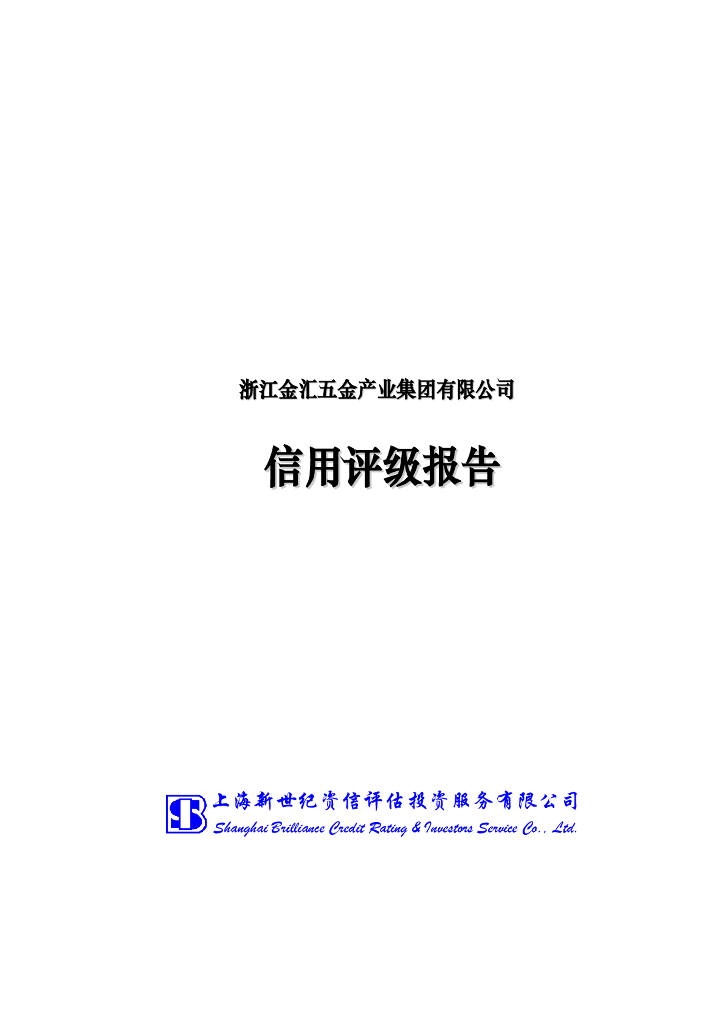 新世纪:浙江金汇五金产业集团有限公司信用评级报告.pdf