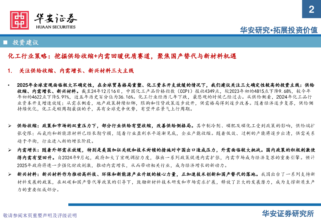 华安证券:化工行业2025年投资策略:关注供给收缩、内需增长、新兴材料三大主线.pdf
