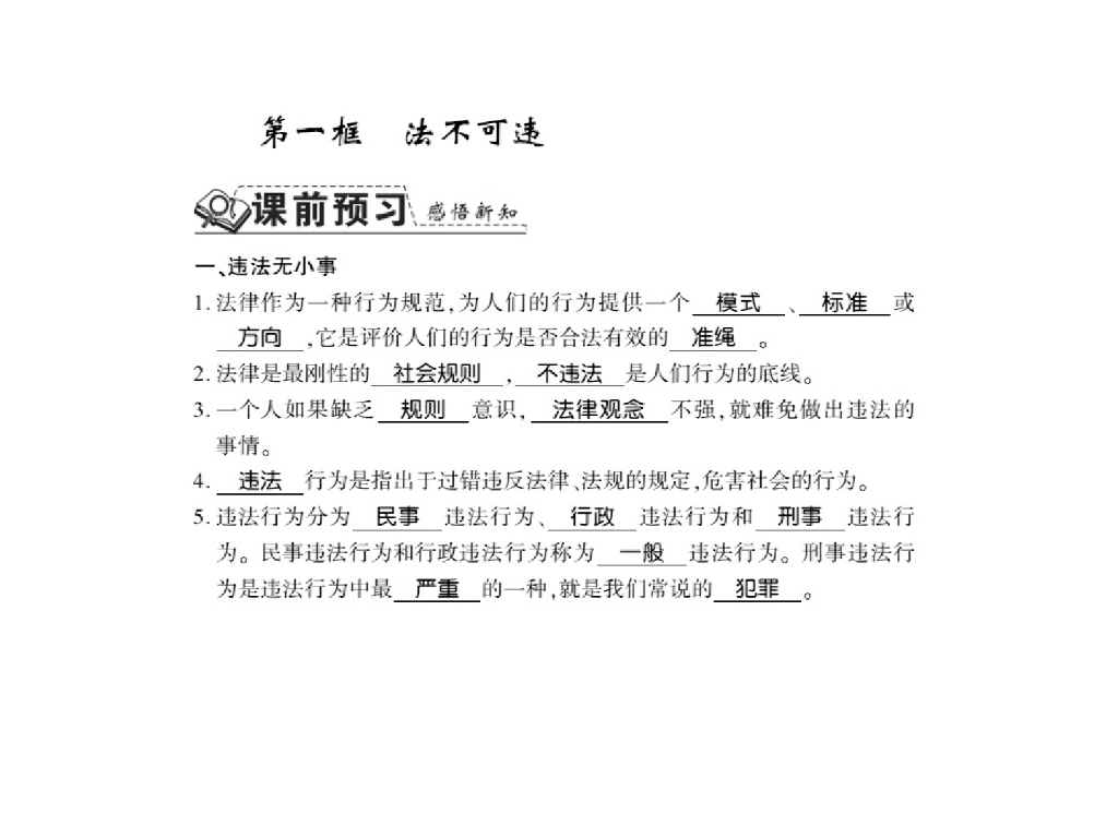 2021人教版八年级道德与法治上册习题课件:第五课第一框 法不可违.ppt