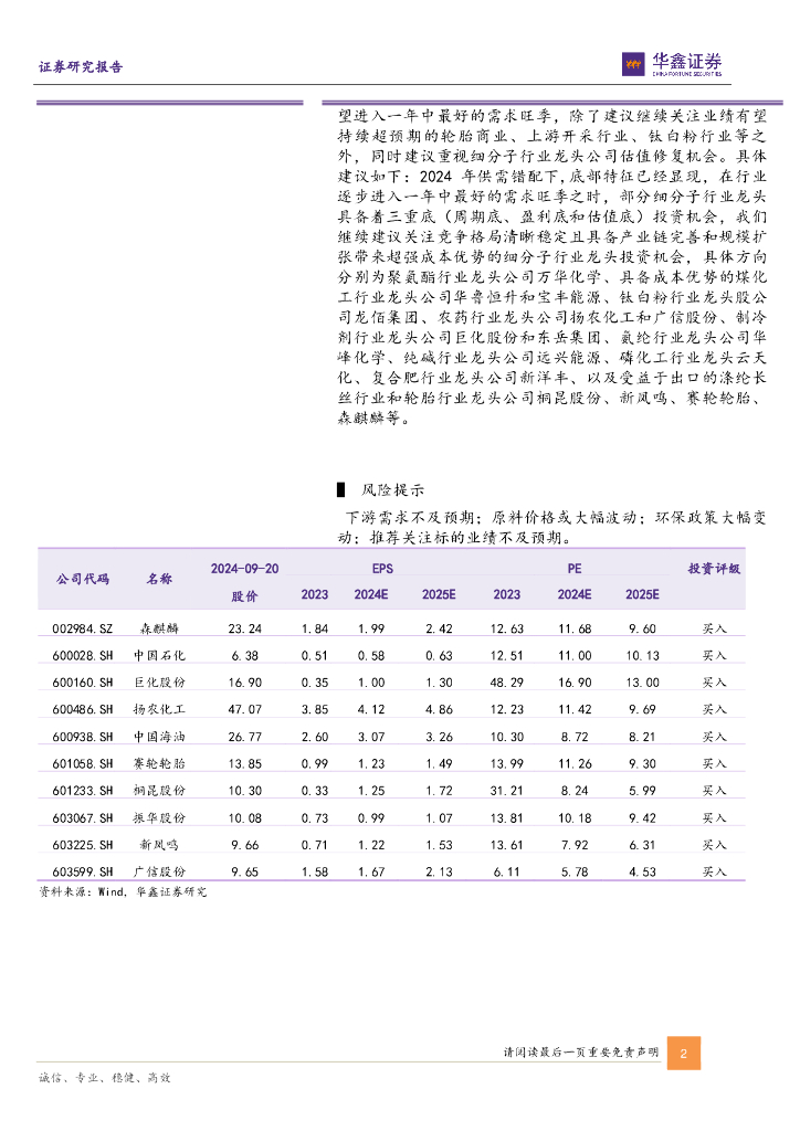 华鑫证券:基础化工行业周报:天然橡胶、合成氨等涨幅居前,建议继续关注石化板块和轮胎板块.pdf