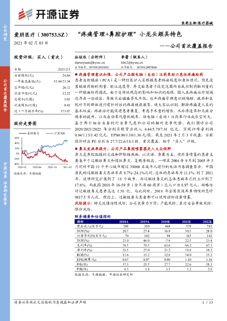 开源证券:爱朋医疗(300753)-公司首次覆盖报告:“疼痛管理+鼻腔护理”小龙头颇具特色.pdf