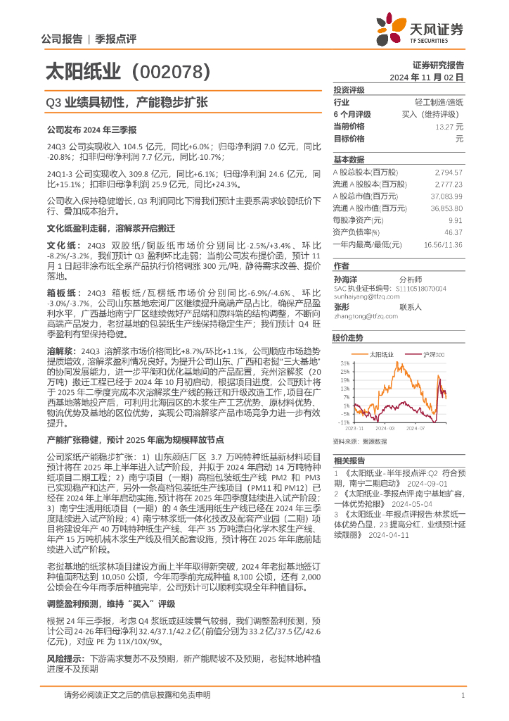 天风证券:太阳纸业(002078)-Q3业绩具韧性,产能稳步扩张.pdf