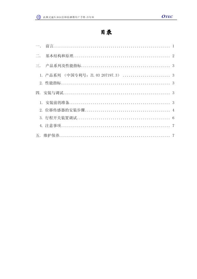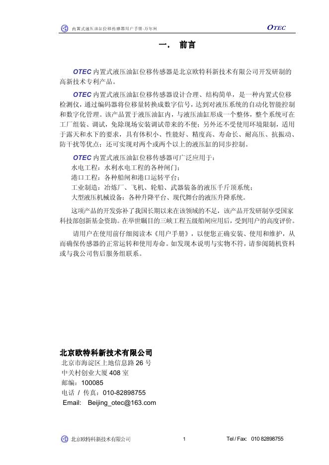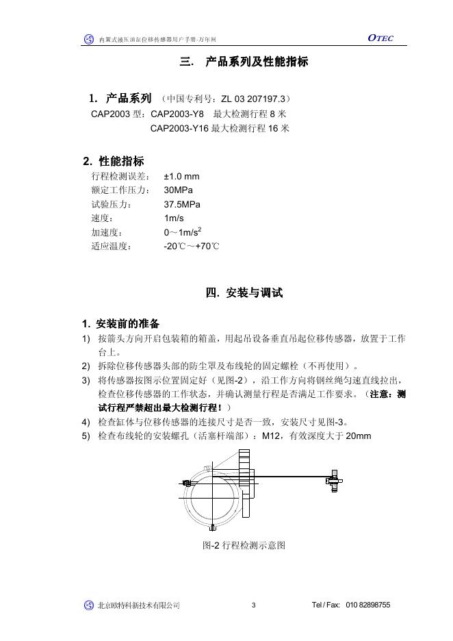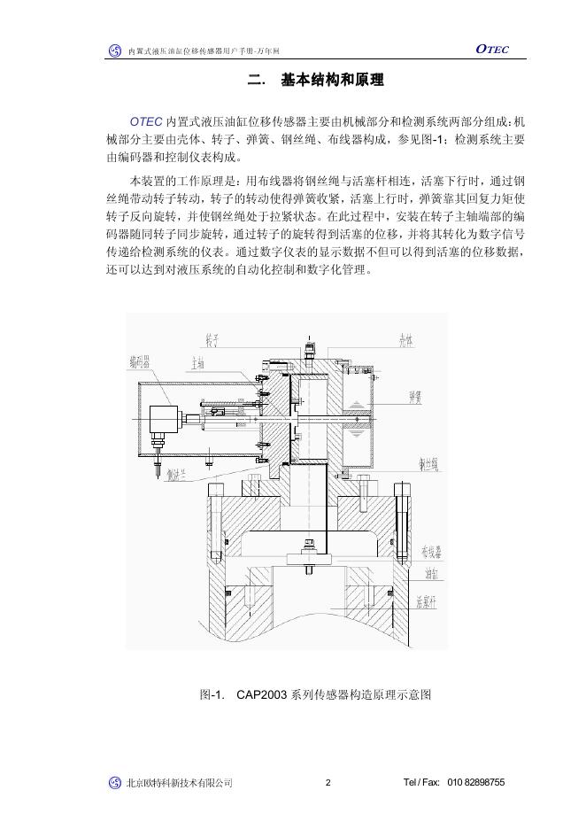 北京欧特科新技术有限公司 CAP2003型 OTEC内置式液压油缸位移传感器 用户手册.pdf
