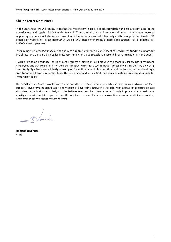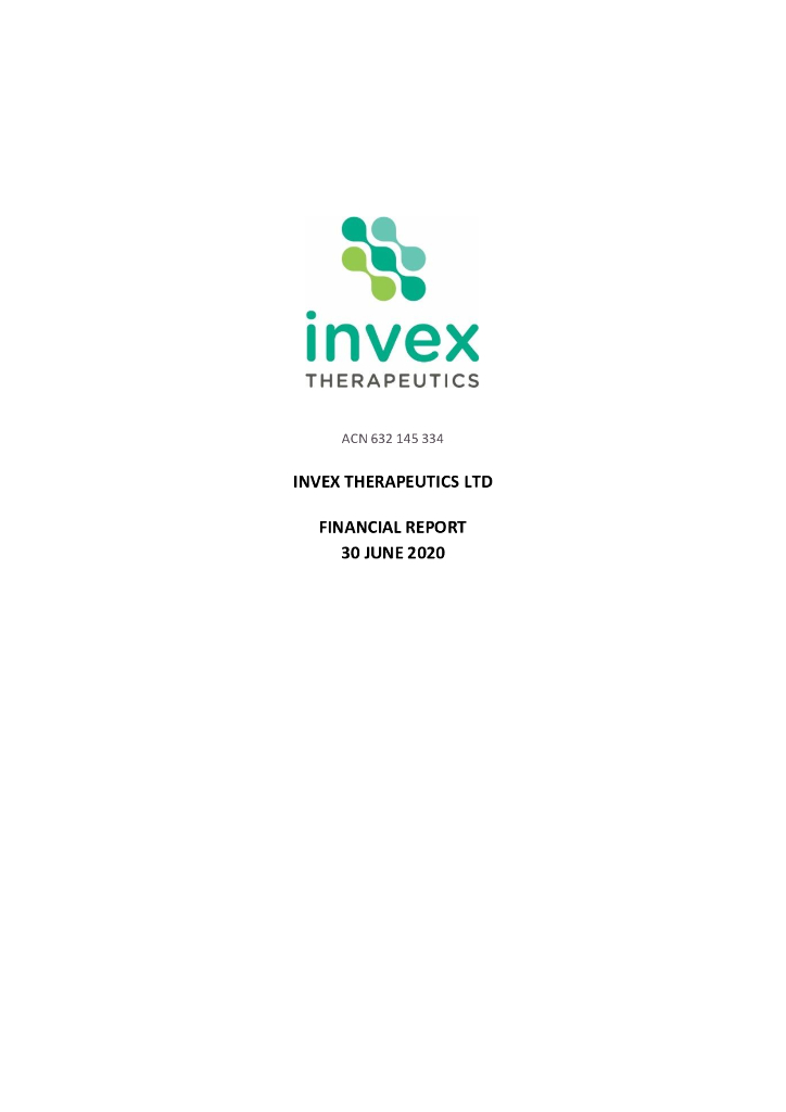 Invex Therapeutics Ltd(IXC)2020财年年度报告(英文版).pdf