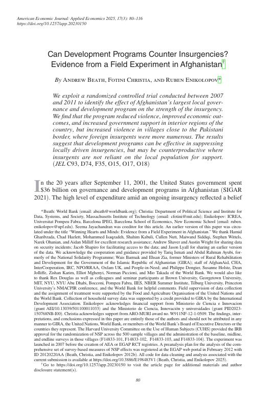 发展计划能对抗叛乱吗?阿富汗实地实验的证据(英文版).pdf