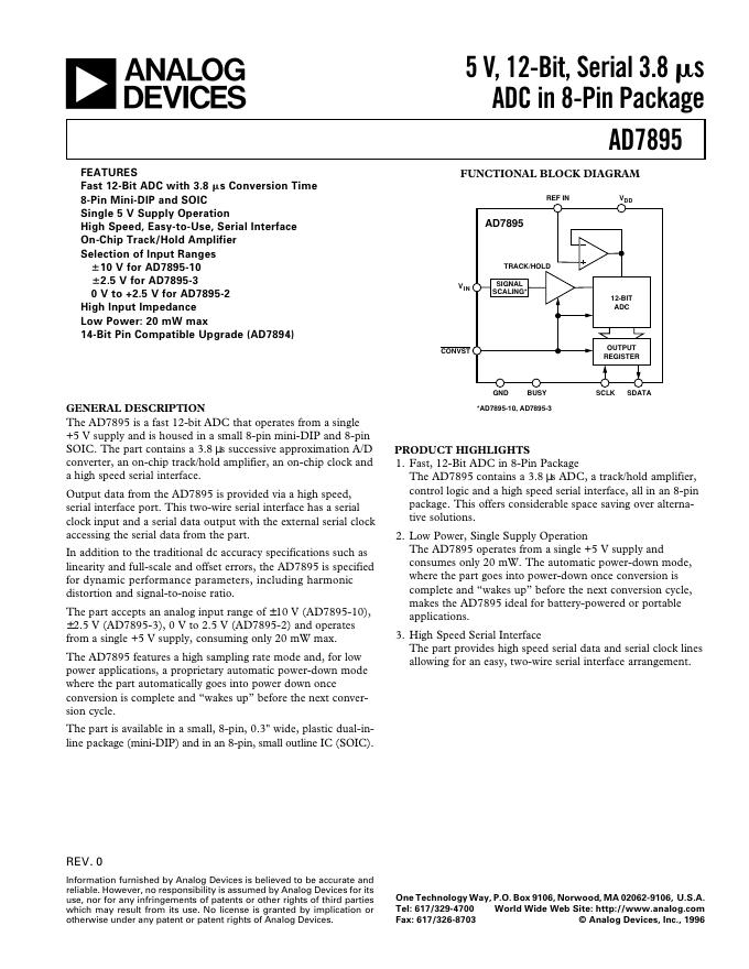 ANALOG DEVICES AD7895 英文产品 数据手册 Rev 0.pdf