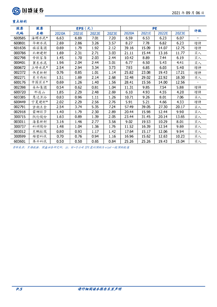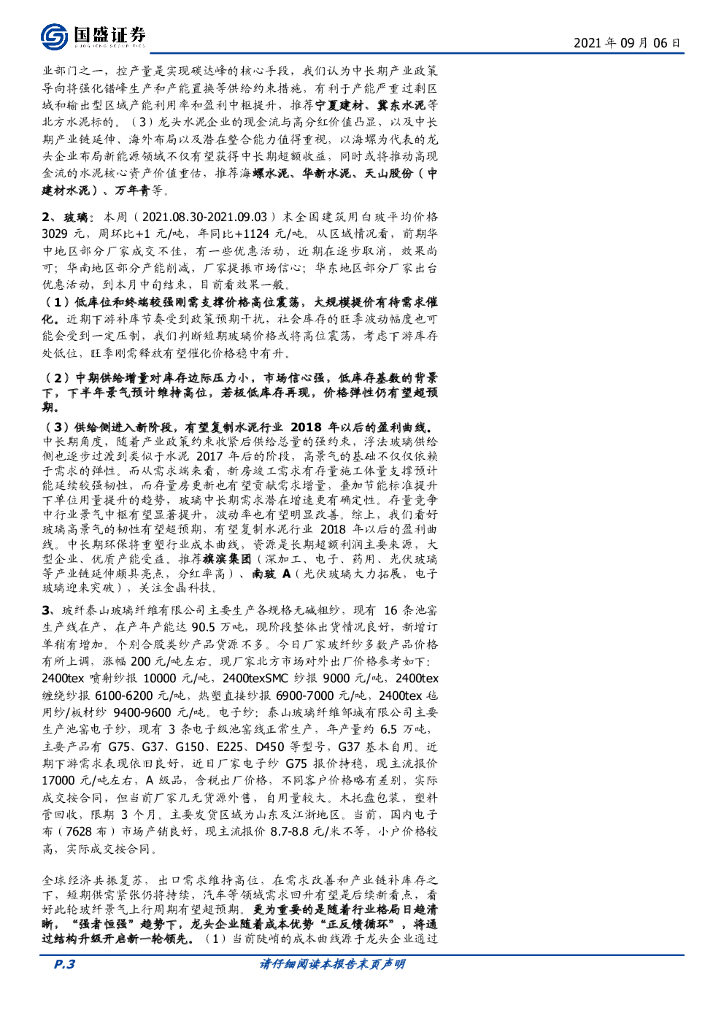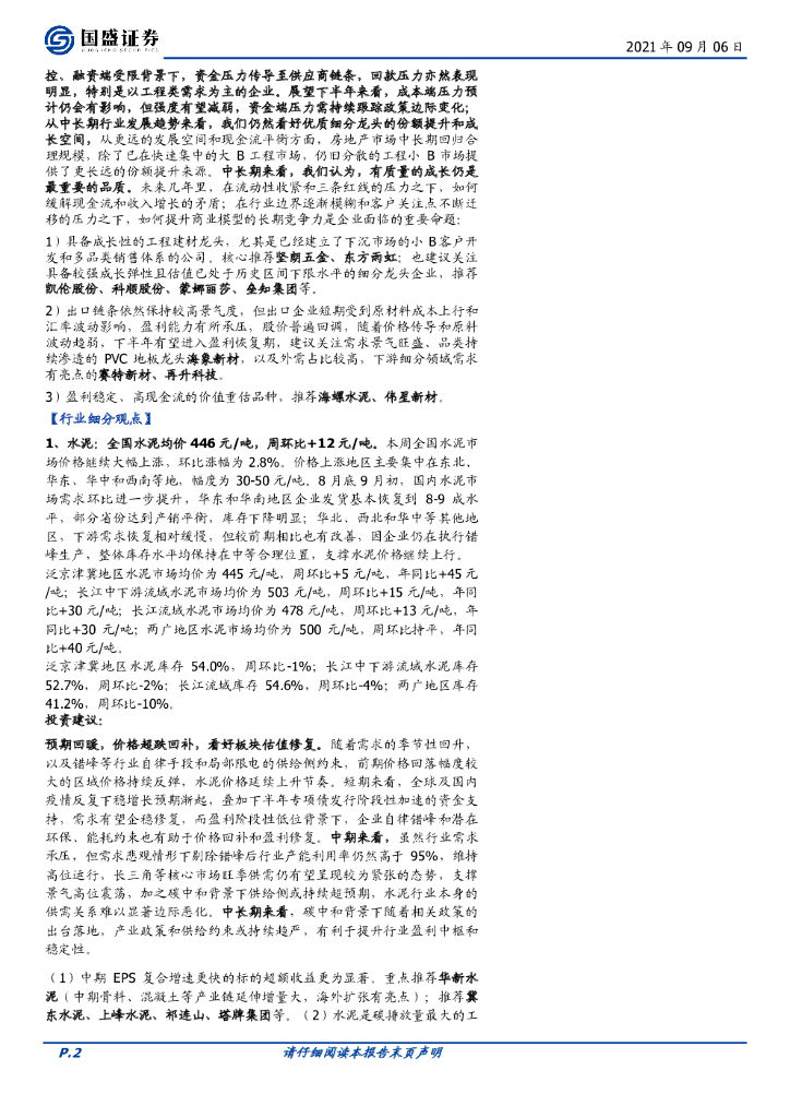 国盛证券:建筑材料行业周报:继续推荐水泥板块,关注优质成长龙头中长期投资机会.pdf