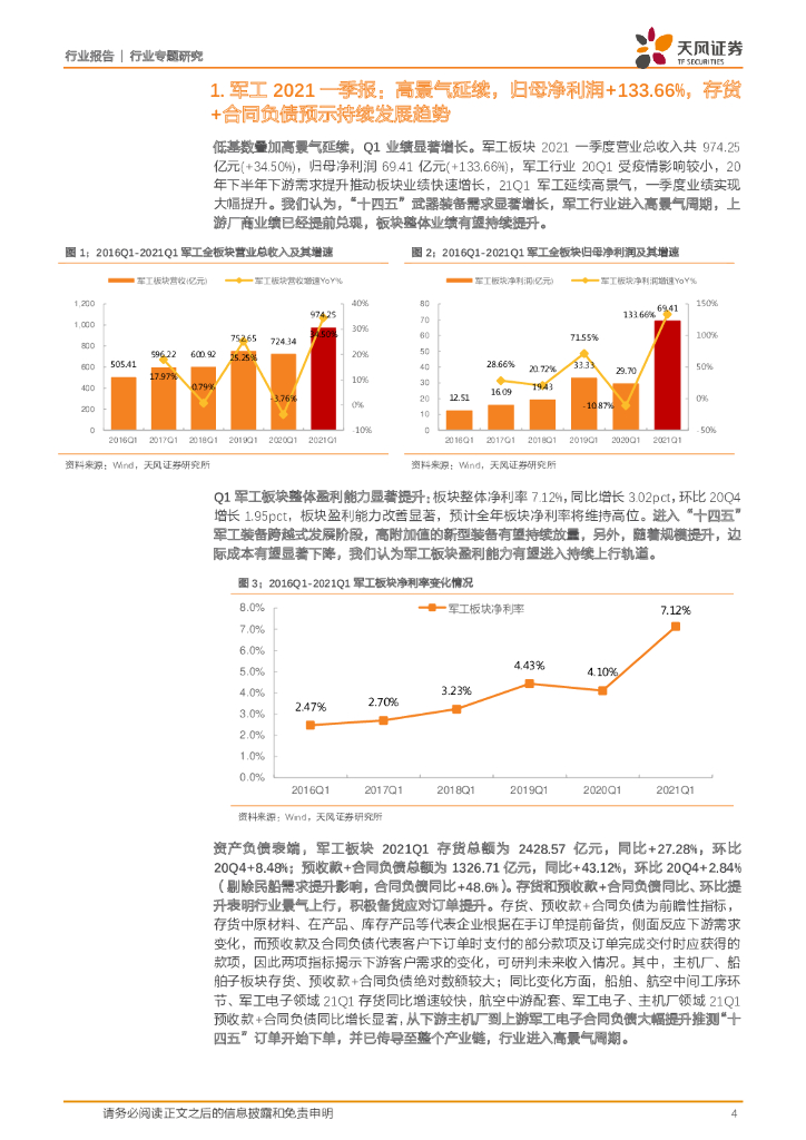 天风证券:国防军工一季报/年报:净利率自4%提升至7%以上,进入规模效应边际成本下降阶段.pdf