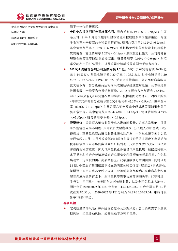 山西证券:中国国旅(601888)-聚焦免税夯实龙头地位,20Q1开通电商、打折维持购买热度.pdf
