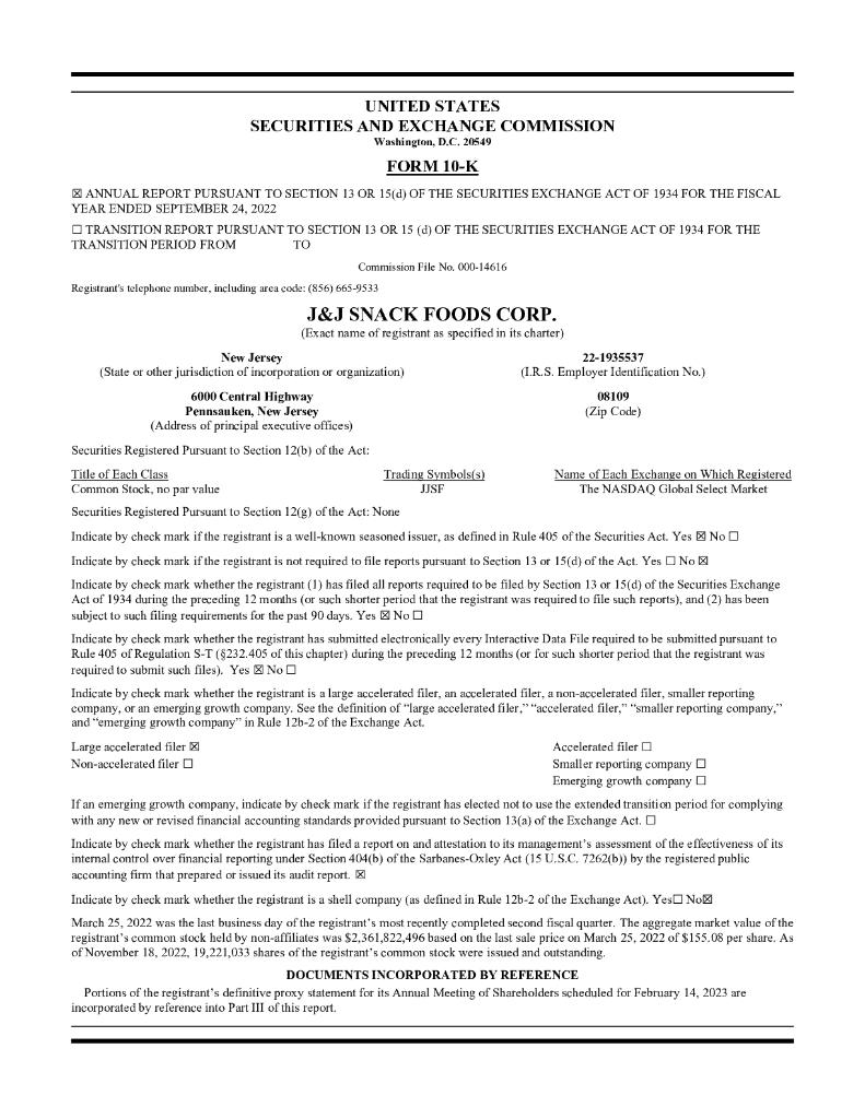 J&J Snack Foods Corp.(JJSF)2022财年年度报告(英文版).pdf