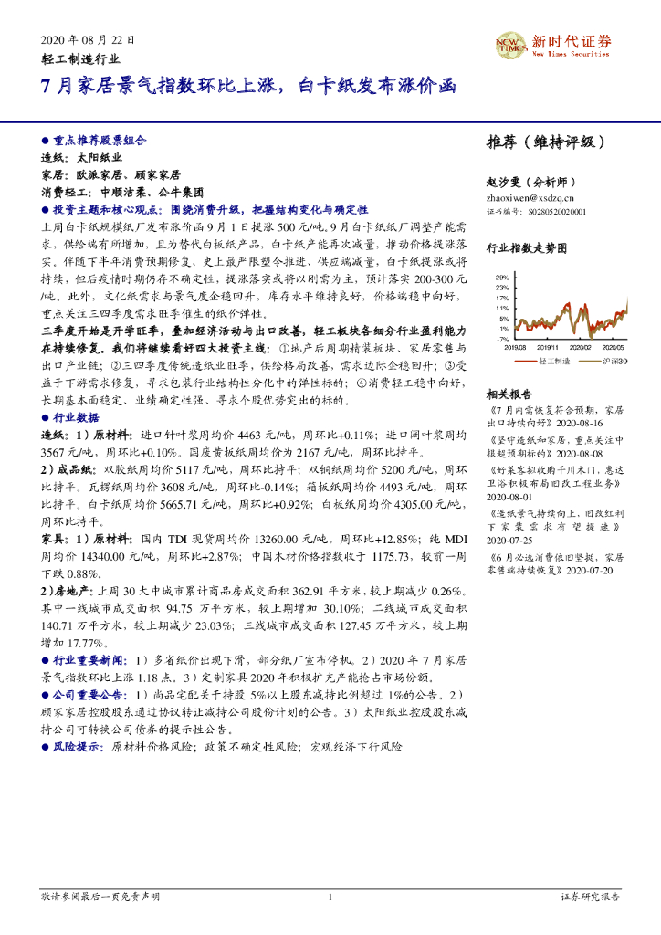 新时代证券:轻工制造行业:7月家居景气指数环比上涨,白卡纸发布涨价函.pdf