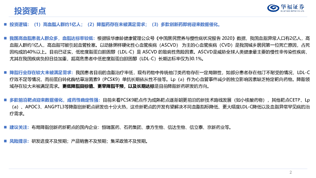 华福证券:降脂药行业深度:庞大患者群体,前沿靶点迎来新突破.pdf