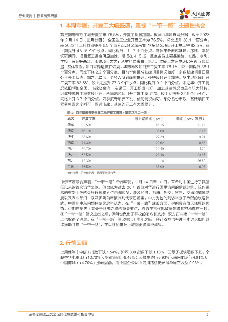 天风证券:建筑装饰行业研究周报:开复工大幅提速,重视“一带一路”主题性机会.pdf